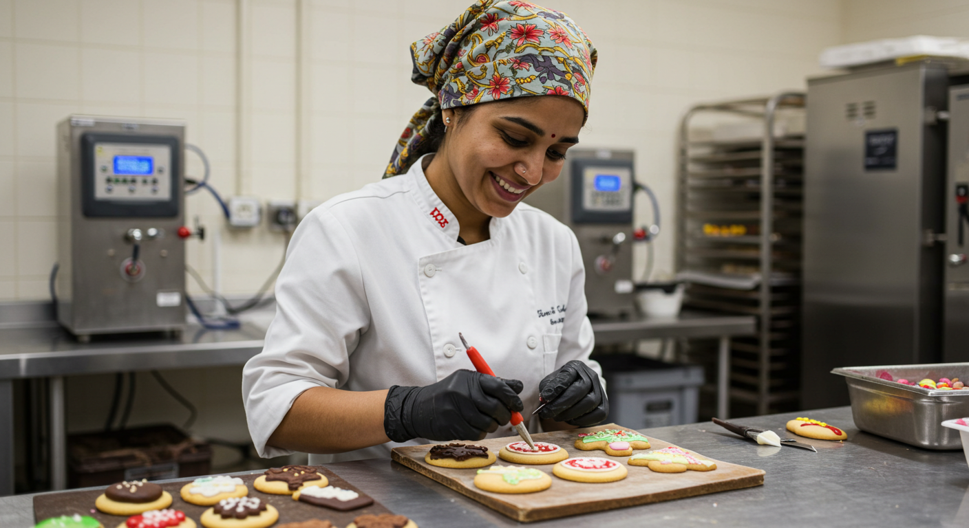마카로나주는 머랭과 아몬드 가루 혼합 시 공기량을 조절하는 기술로, 반죽의 질감을 좌우합니다. 너무 많이 섞으면 퍼지고, 부족하면 거칠어집니다.
